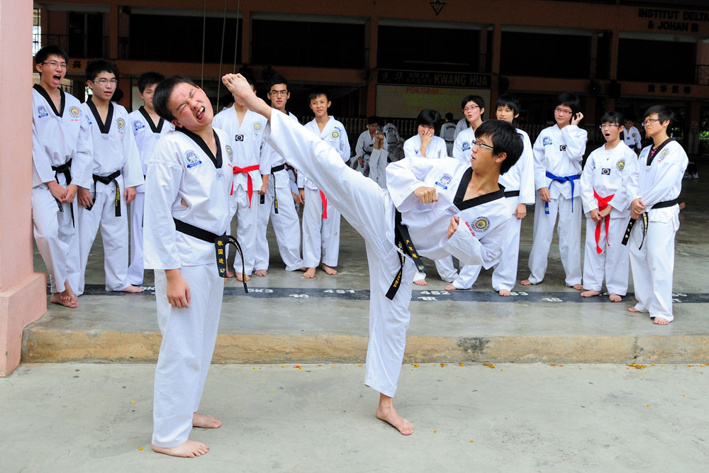 Taekwondo Club in SMJK Kwang Hua was established since 1974. Currently, we have more than 70 members and still growing. Our training is held every Saturday, in Dataran Kwang Hua from 4.30pm to 6.30pm. Master Leong Yong Wah, is our instructor and assisted by Mr. Tan Kien Tat and Mr. Chong Zhi Hao. Kudos to the dedicated instructors, committees, and of course, not forgetting the members who play a vital role in keeping the Taekwondo club standing tall not just in the past and present, but hopefully for many more years to come. We train diligently every week and in each session we always strive to do our best. Beside the training, we have a lot of fun too in other activities. We are like one big happy family, sharing our precious and joyful moments together.