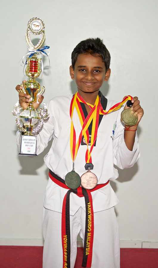 Yovinassh Raj s/o Ropathy was named ‘Student of the Month’ for January 2014 by Power Sport Taekwondo Academy. A head librarian, a responsible post, Yovinassh is also intelligent and disciplined. Recently, he score straight A’s in his UPSR and has also proven himself to be equally as good in his taekwondo with all the medals won. An adorable kid always with a charming smile.